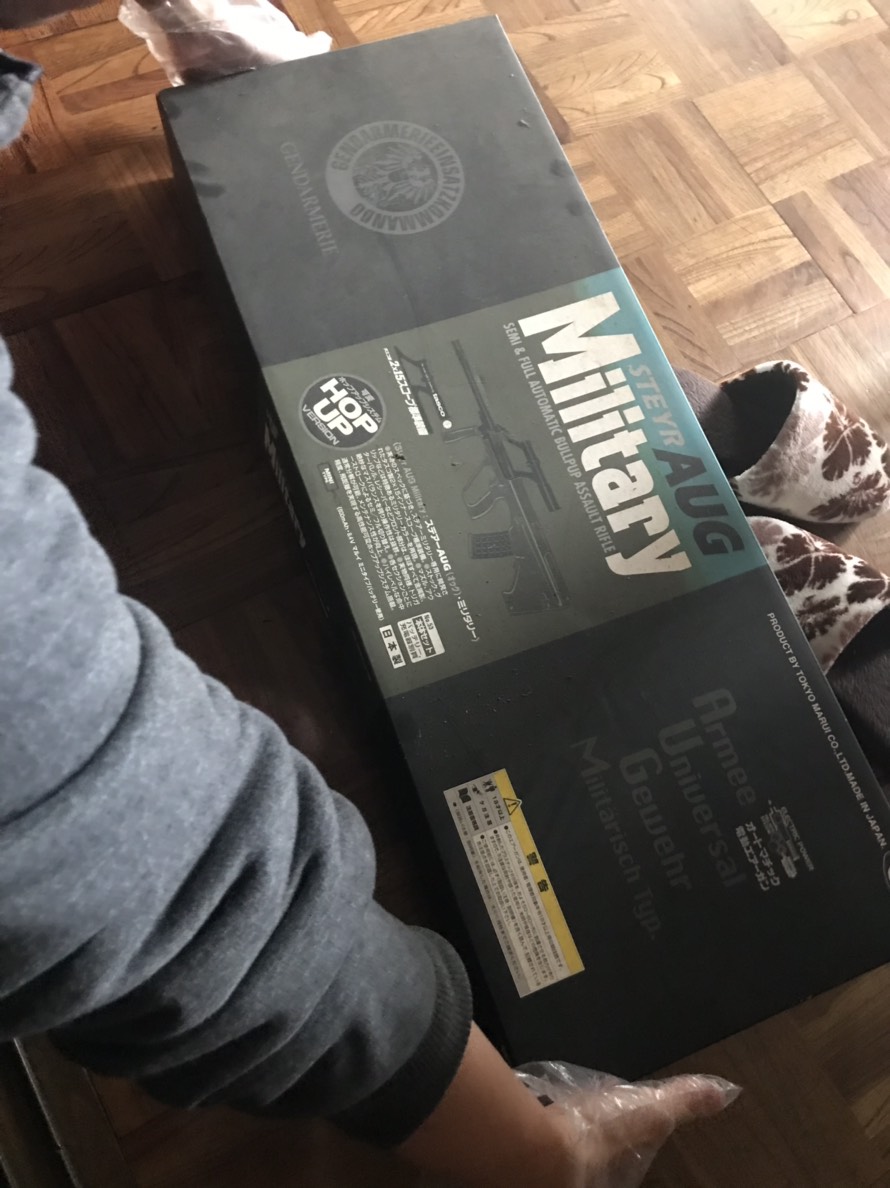 写真のサムネイルではモスグリーンの地色に白地で「Military」黒字で「AUG」とかかれているのが読み取れた。