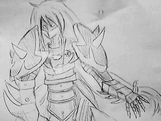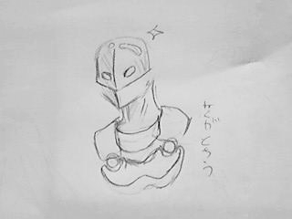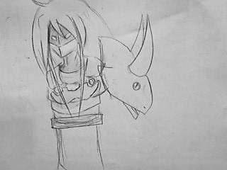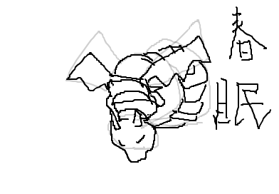 肩の部分を描き始め・・・なんか角っぽいのを描いたら・・・某狩猟ゲームに出てくる二本角のあいつに見えた。